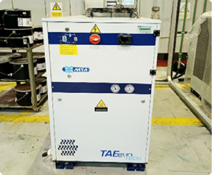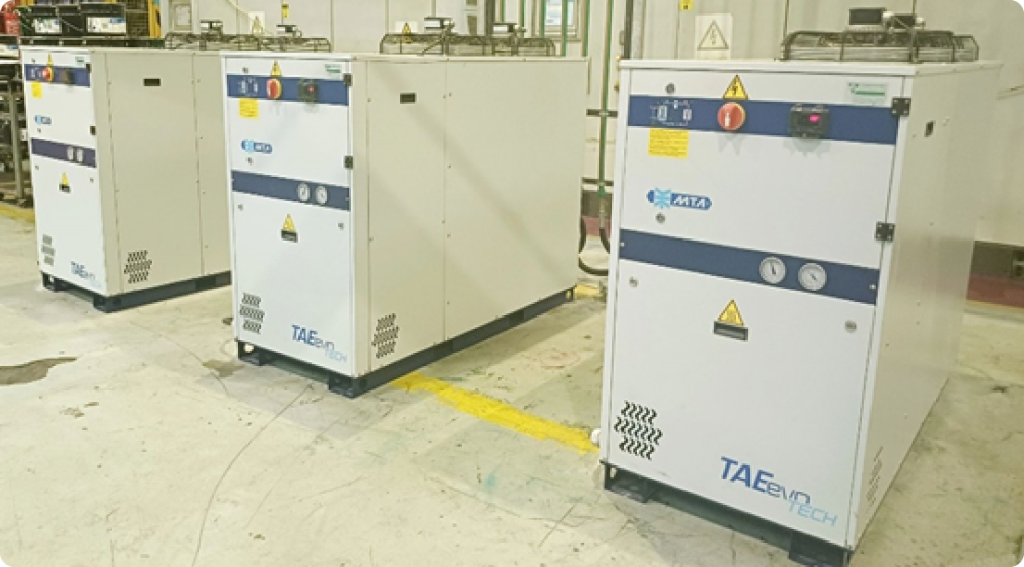- Seamless Integration: MTA’s TAE chillers were installed and connected to each printing machine, with full support from our service department during startup, ensuring flawless operation.