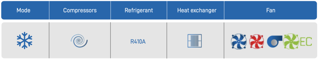 - Refrigerant: R410A;